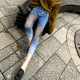 橙子女装★2017新款春夏季渔网破洞牛仔裤女九分裤韩版乞丐裤子
