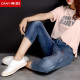 夏秋新款破洞牛仔裤七分裤女夏薄款九分休闲小脚宽松哈伦裤女大码