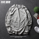 HE潮牌原创拼布T恤男长袖秋冬青少年潮流大底衫学生简约百搭T恤男