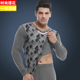秋冬男士V领秋衣秋裤纯棉薄款提花保暖内衣套装青年打底棉毛衫潮