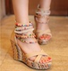 新款夏季彩色串珠波西米亚民族风超高跟坡跟凉鞋厚底女鞋松糕鞋子