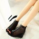 2015夏季新款韩版网状鱼嘴拉链黑凉鞋内增高坡跟凉靴网纱女士鞋子