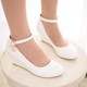 春夏新款内增高女单鞋粉色甜美学生鞋浅口中低跟一字式扣带坡跟鞋