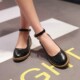 甜美公主绑带圆头少女单鞋大学生坡跟小皮鞋2017春夏新款女孩鞋子