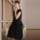 崽家 水绿与迷黑 重工水钻领 薄款弹力针织七分袖修身连衣裙 QC