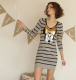 崽家 独版 重工卡通 重工珠片米奇条纹 秋款新针织连衣裙 黑色QC
