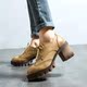 短靴女秋2016潮粗跟马丁靴英伦磨砂真皮侧拉链中跟圆头骑士及踝靴