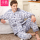 芬腾睡衣男士纯棉质长袖春秋季格子开衫全棉宽松韩版家居服套装