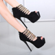 欧美新款超高跟凉鞋 夜店性感鱼嘴高跟鞋 罗马细带防水台细跟女鞋
