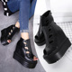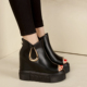 韩版2017春季新款内增高鱼嘴凉鞋防水台厚底松糕时尚坡跟凉靴女