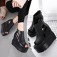 春夏新款鱼嘴高跟鞋 韩版防水台厚底坡跟凉鞋 欧美夜店性感公主鞋