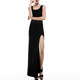 2017春夏欧美新款韩版莫代尔连衣裙修身性感包臀开叉一步裙背心裙