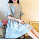 2017夏装新款连衣裙印花宽松文艺小清新喇叭袖中长款纱网拼接裙