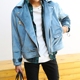 蔡先生韩版春季新款宽松字母带子拉链牛仔衣男士情侣牛仔夹克外套