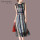 女装夏装2017新款潮印花连衣裙条纹雪纺复古长裙子修身韩版F40