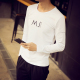 春秋季纯棉时尚潮流长袖T恤男士韩版修身大码圆领打底衫青年男装