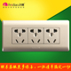 【天天特价】飞雕 A3奢华香槟金118型三位小五孔开关插座面板