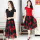 2017夏季新款妇女装中长款修身夏天短袖妈妈时尚印花雪纺连衣裙子