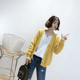 2017春秋新款姜黄色针织衫女开衫 V领毛衣长袖短款韩版宽松外套潮