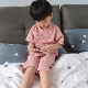 GDG.TT夏季和风睡衣套装 日式亲子装格子短袖棉麻浴衣儿童家居服