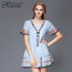 欧美大码女装特价断码清仓胖mm夏装V领钉珠连衣裙宽松a字百褶裙