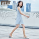 对白气质修身无袖连衣裙女 2017夏装新款 简约纯色高腰圆领中裙子