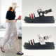 欧美真皮厚底珍珠凉鞋17夏季一字带织带平底松糕搭扣罗马凉鞋女