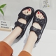 自制 小香风2017夏季平底菱格沙滩鞋魔术贴罗马厚底松糕凉鞋女鞋