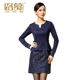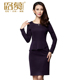 路慕2016新款秋装女士女装大码ol气质圆领收腰修身长袖连衣裙