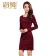 春装连衣裙2017新款品牌女装大码中长款OL长袖红色针织春秋季裙子