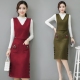 2017新款修身显瘦V领OL打底背带毛呢子无袖中长款连衣裙春秋女装