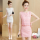 2017夏季新款女装蕾丝修身包臀性感短裙无袖连衣裙时尚两件套装潮