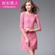 时衫贤人春季新款女装蕾丝七分袖连衣裙名媛气质修身A字裙