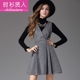 时衫贤人 春装新款修身毛呢无袖连衣裙格子打底背心裙A字裙