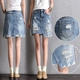 韩版破洞夏季牛仔短裙中长款修身a字裙毛边刺绣牛仔包臀裙一步裙
