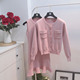 韩国单春装名媛小香风荷叶边鱼尾修身针织背心连衣裙+外套两件套