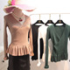 韩国秋上新复古百搭交叉V领木耳边长袖修身荷叶边打底针织衫毛衣