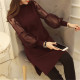 2017春装新款韩版拼接蕾丝袖圆领中长款套头包臀打底针织衫毛衣女
