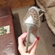 2017夏新款尖头水钻高跟鞋细跟蛇纹单鞋一字扣带水晶鞋银色女婚鞋