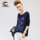 COCOBELLA 2017春季新款宽松长袖拼接字母印花打底衫女潮T恤TE196
