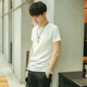 洛本日系亚麻短袖T恤男V领棉麻t恤男士上衣