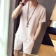 夏季棉麻套装男士休闲运动两件套t恤短袖韩版潮流青年亚麻薄款