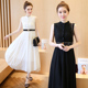 2017淑女气质修身拼接雪纺大摆型飘逸长款夏拖地长裙连衣裙