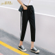 金缕梅夏季新款韩版侧边条纹运动裤百搭宽松黑色九分裤学生休闲裤