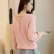 2017春装新款女装韩版宽松显瘦V领后背系带针织衫套头女毛衣外套