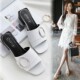 欧美单鞋中跟粗跟尖头一字扣高跟鞋女夏季铆钉浅口百搭包头凉鞋女