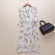 秋冬新款真丝长袖连衣裙女桑蚕丝打底裙奶白碎花收腰裙加大妈妈装
