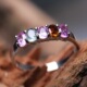 AAAA级天然碧玺戒指925纯银多彩镶石女戒旺财