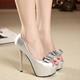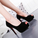 细跟高跟鞋女夏浅口套脚防水台超高跟夜店单鞋性感鱼嘴蝴蝶结女鞋