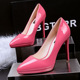 10cm尖头浅口单鞋细跟超高跟春秋漆皮黑色女鞋夜店性感小高跟鞋夏